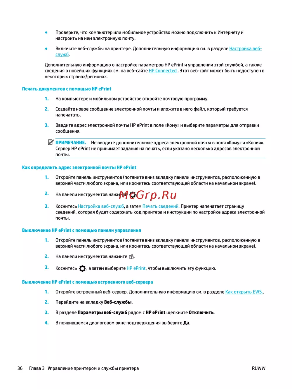 36 Глава 3 Управление принтером и службы принтера RUWW