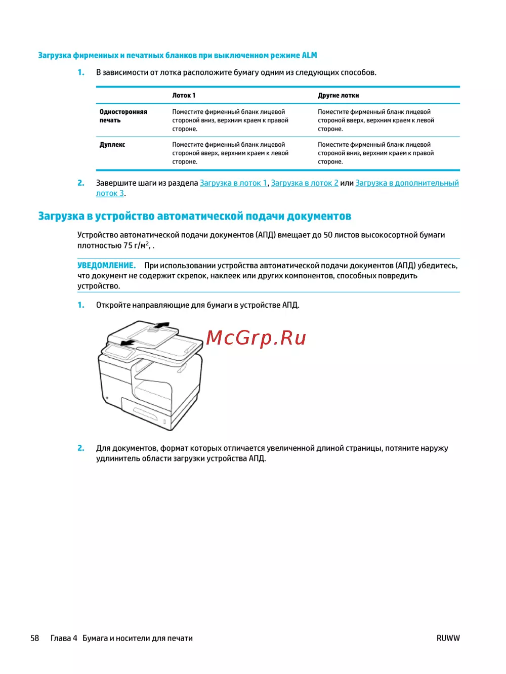 УВЕДОМЛЕНИЕ. При использовании устройства автоматической подачи документов (АПД) убедитесь,