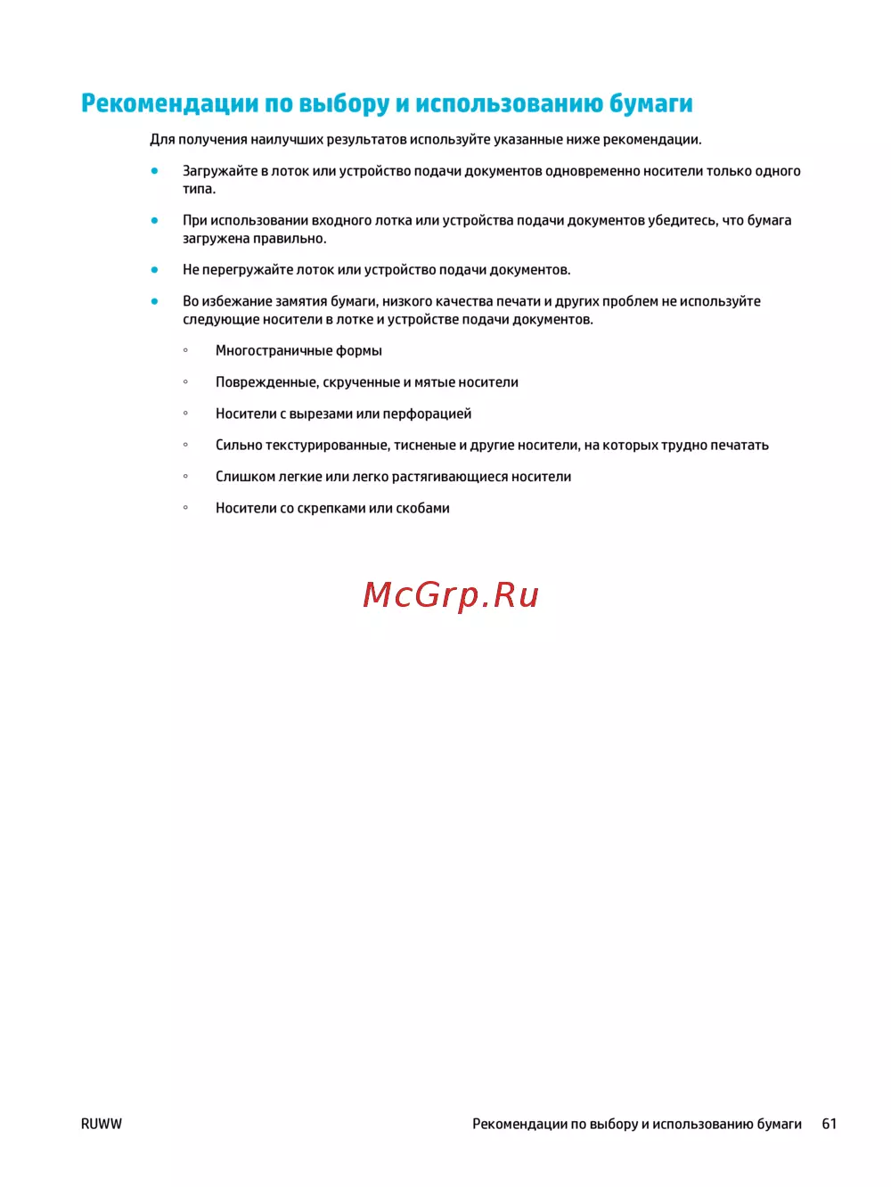 ![HP PageWide Pro MFP 477dw(D3Q20B) [77/231] Рекомендации по выбору и использованию бумаги](/views2/1218898/page77/bg4d.png)