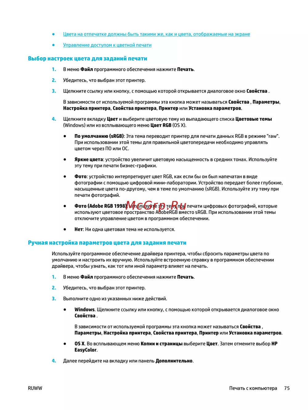 HP PageWide Pro MFP 477dw(D3Q20B) [91/231] Ручная настройка параметров цвета для задания печати