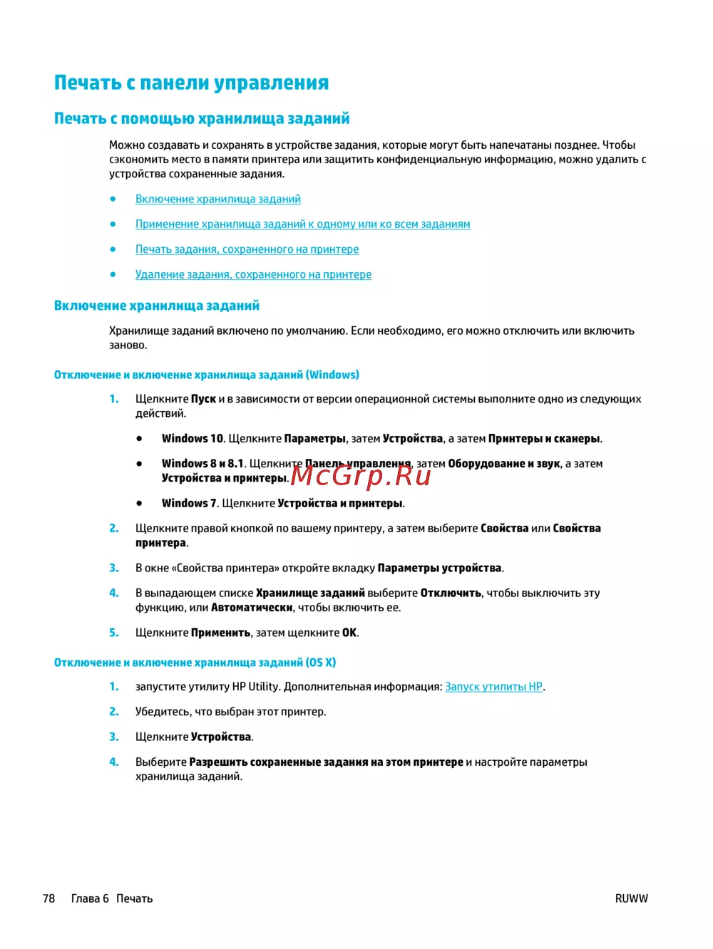 HP PageWide Pro MFP 477dw(D3Q20B) — как управлять хранилищем заданий для печати на принтере [94/231]