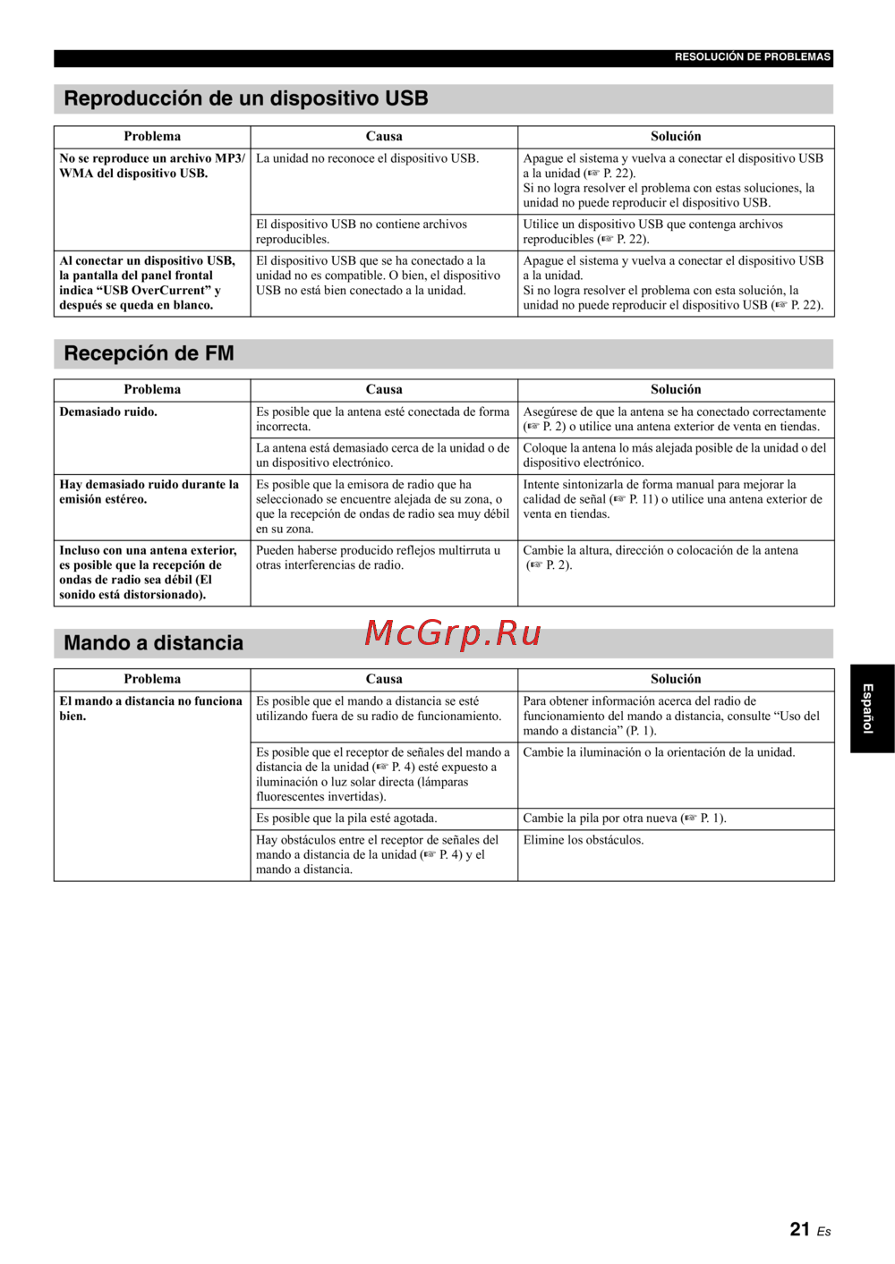 unidad no puede reproducir el dispositivo USB (☞ P. 22) .