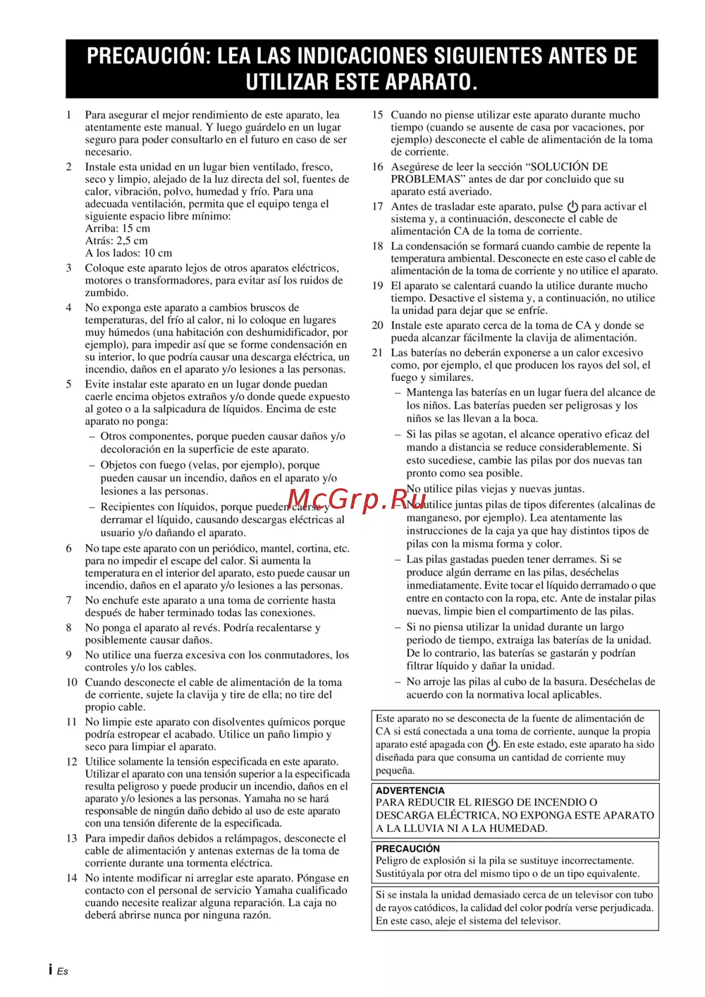 ![Yamaha 0 ISX-B820 Emerald Green [122/196] Precaución lea las indicaciones siguientes antes de utilizar este aparato](/views2/1086539/page122/bg7a.png)