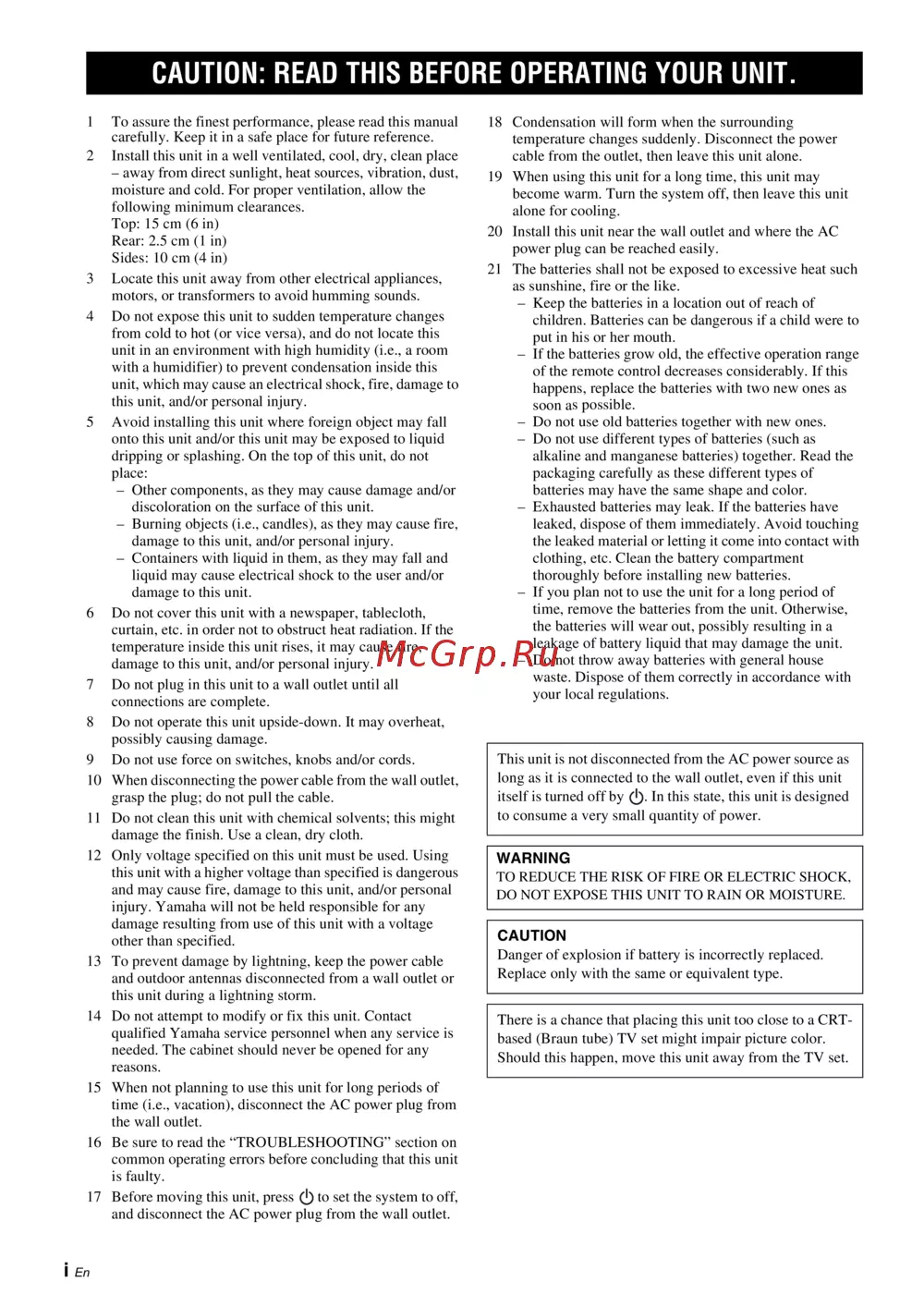 Yamaha 0 ISX-B820 Emerald Green — руководство по безопасной эксплуатации устройства [2/196]