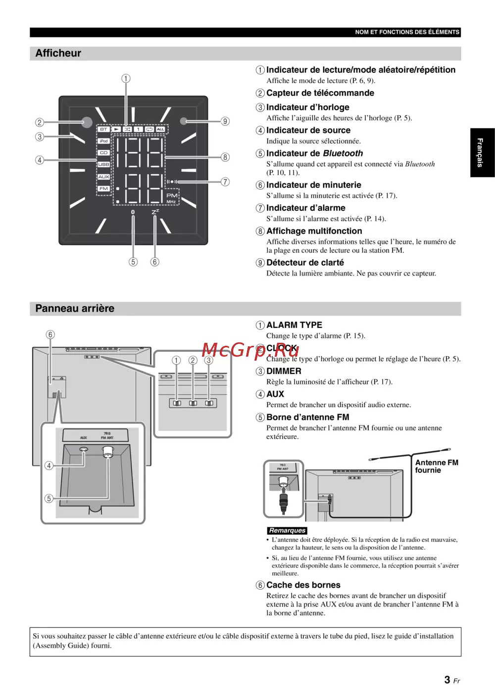 externe à la prise AUX et/ou avant de brancher l’antenne FM à
