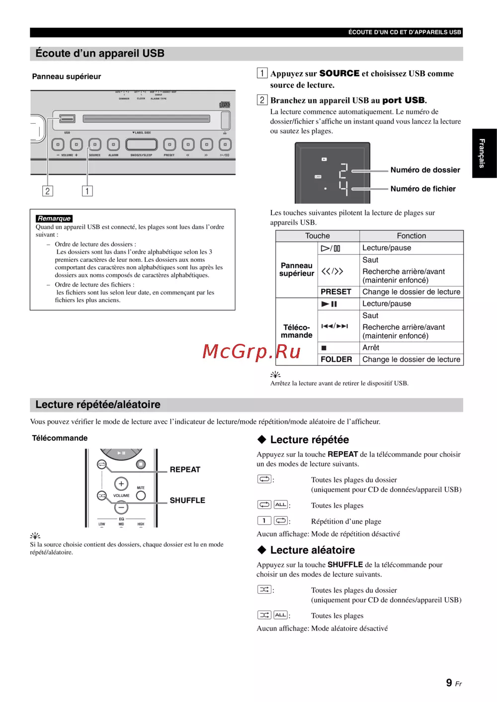 Quand un appareil USB est connecté, les plages sont lues dans l’ordre