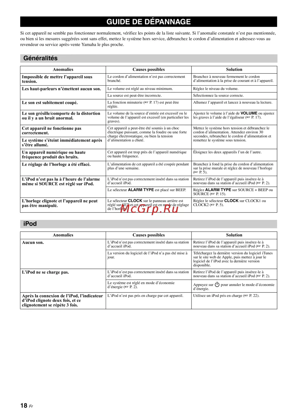 - В случае возникновения проблем при использовании устройства сначала обратитесь к следующему списку если устранить проблему с помощью предложенных способов не удается или если проблема не указана в списке выключите систему и отсоедините от сети электропитания затем обратитесь к ближайшему авторизованному дилеру yamaha или в сервисный центр p.188