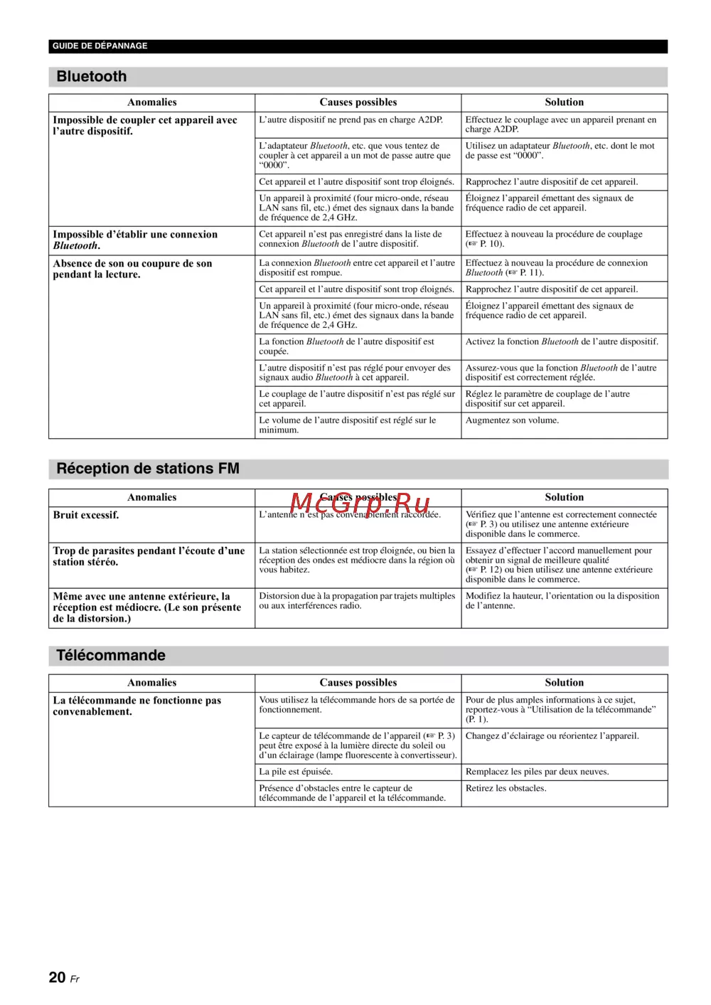 GUIDE DE DÉPANNAGE