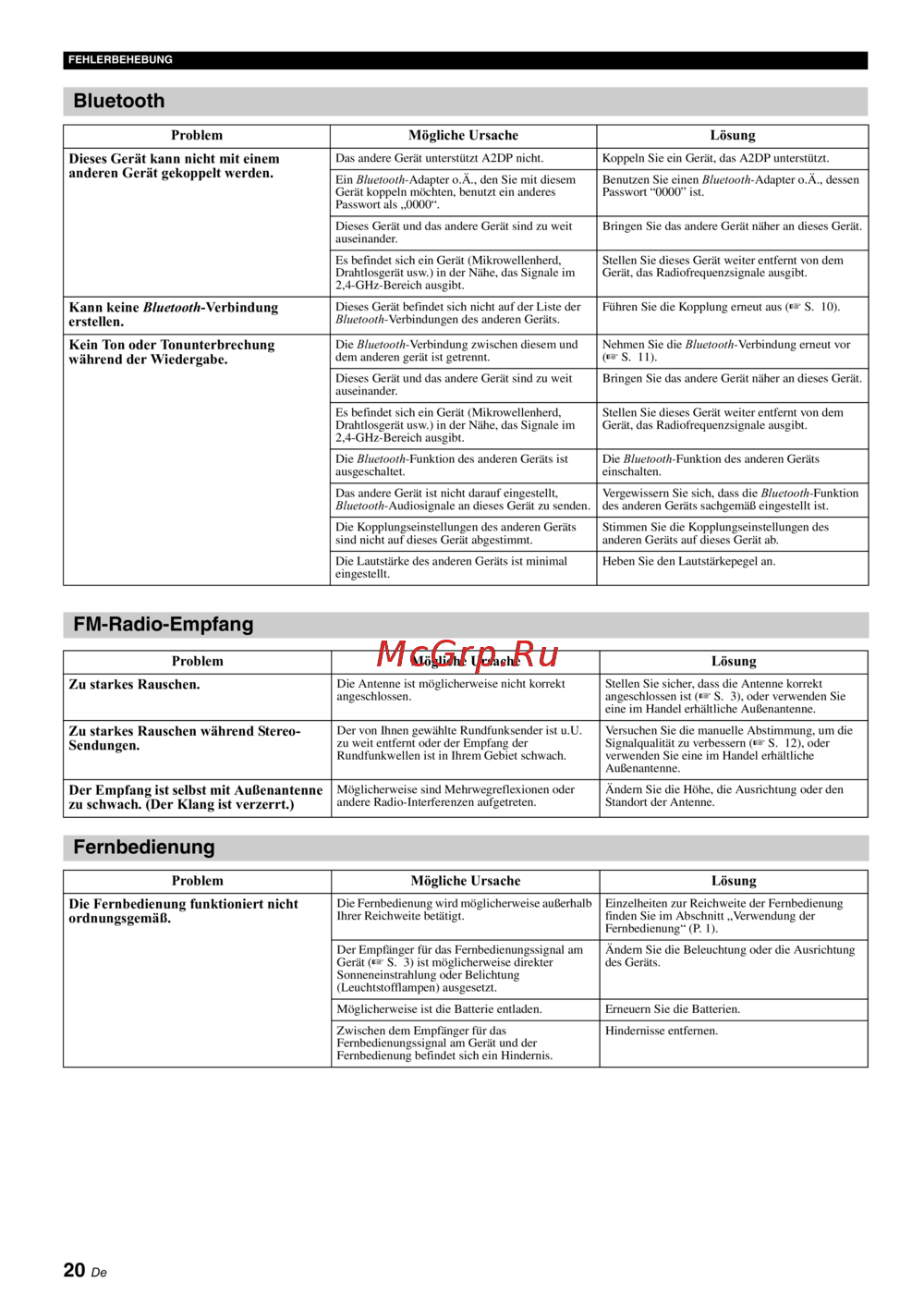Fernbedienung“ (P. 1).