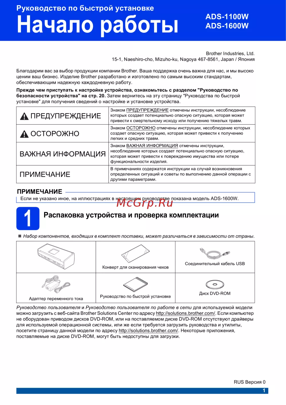 Brother ADS1100WR1 — руководство по быстрой установке и настройке устройства [1/37]