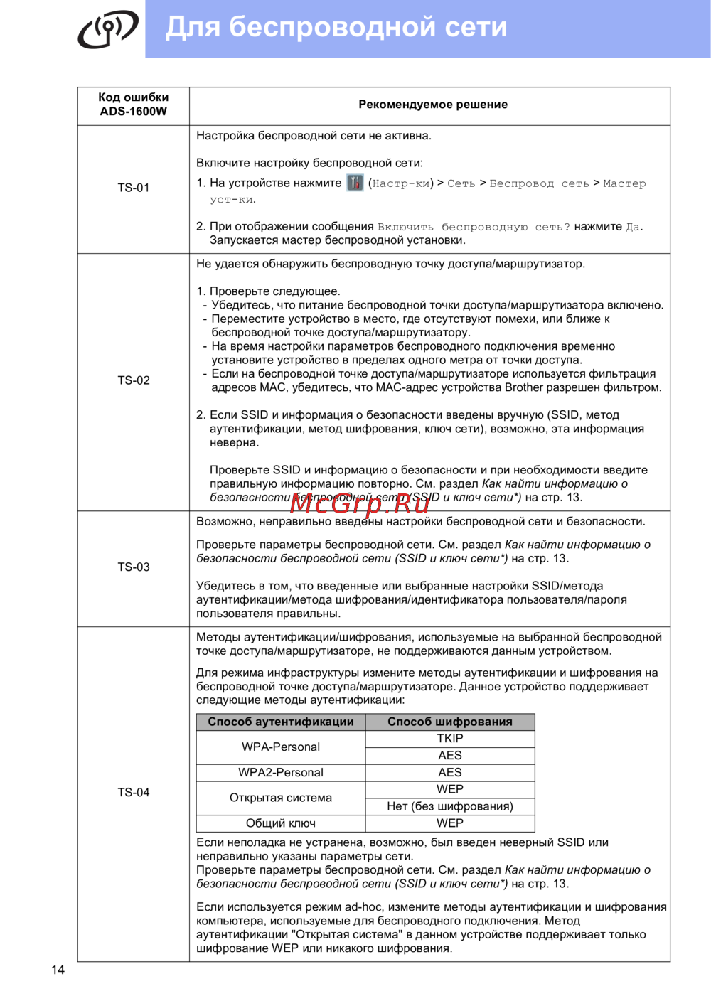 Brother ADS1100WR1 [14/37] Для беспроводной сети