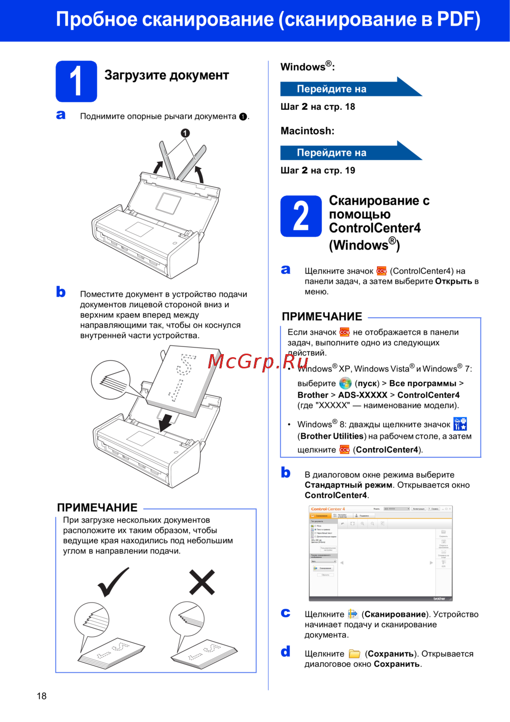 Brother ADS1100WR1 [18/37] Сканирование с помощью controlcenter4 windows