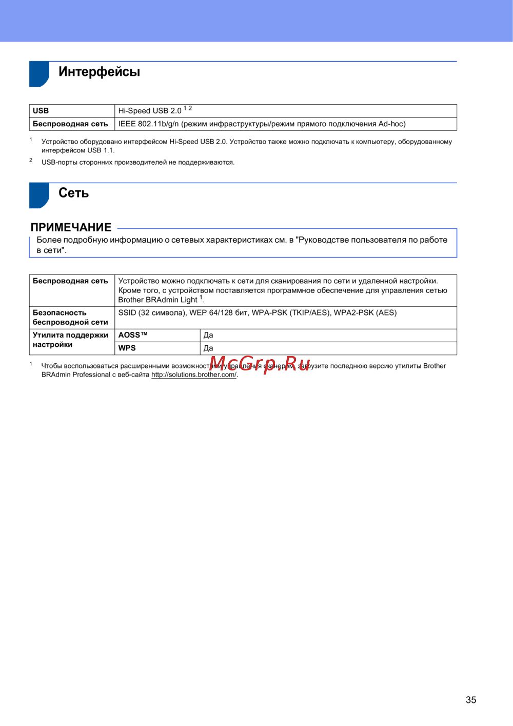 - Более подробную информацию о сетевых характеристиках см в руководстве пользователя по работе в сети p.35