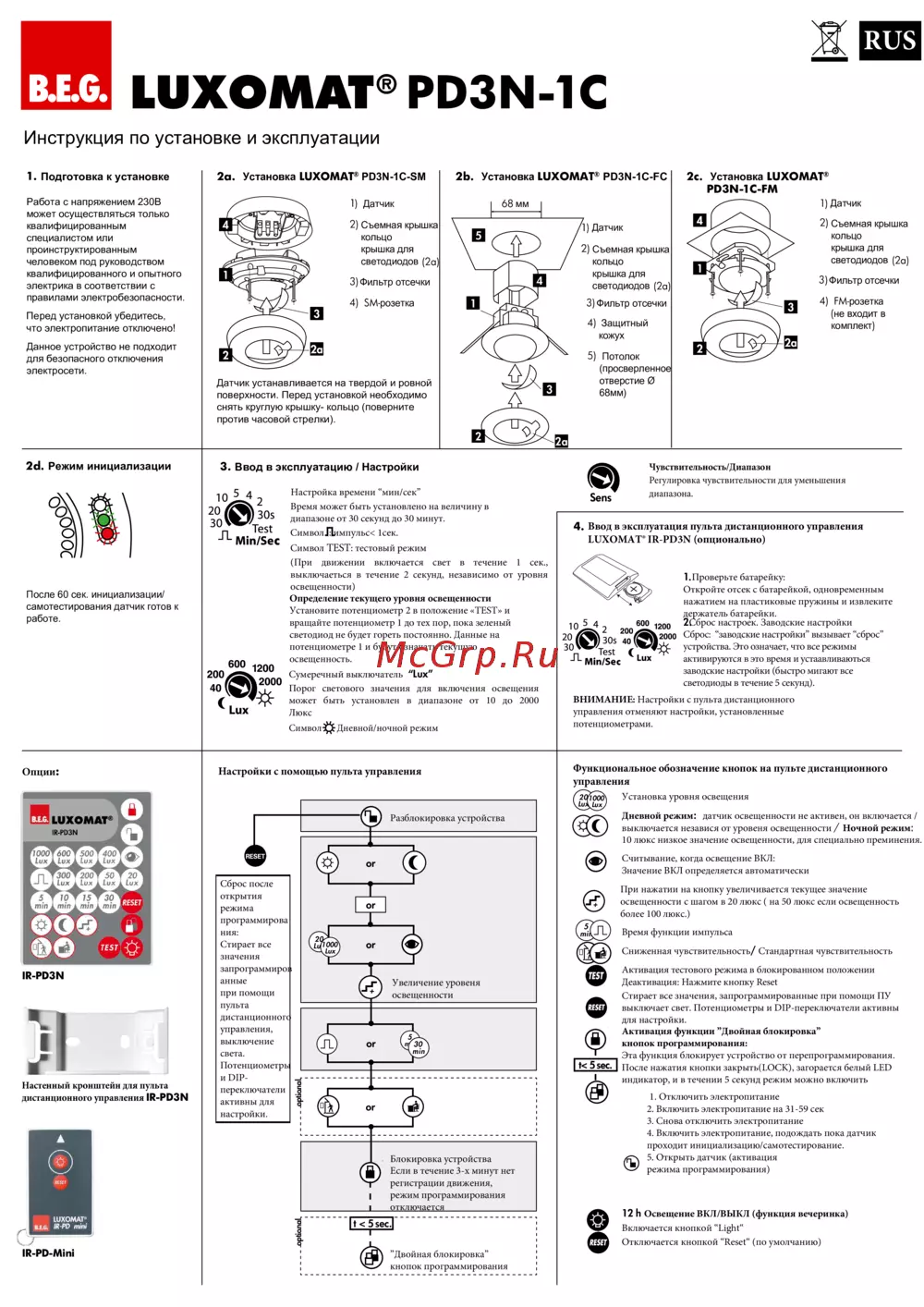 B.E.G. 92196 — настройка и эксплуатация датчиков освещенности и управления [1/2]