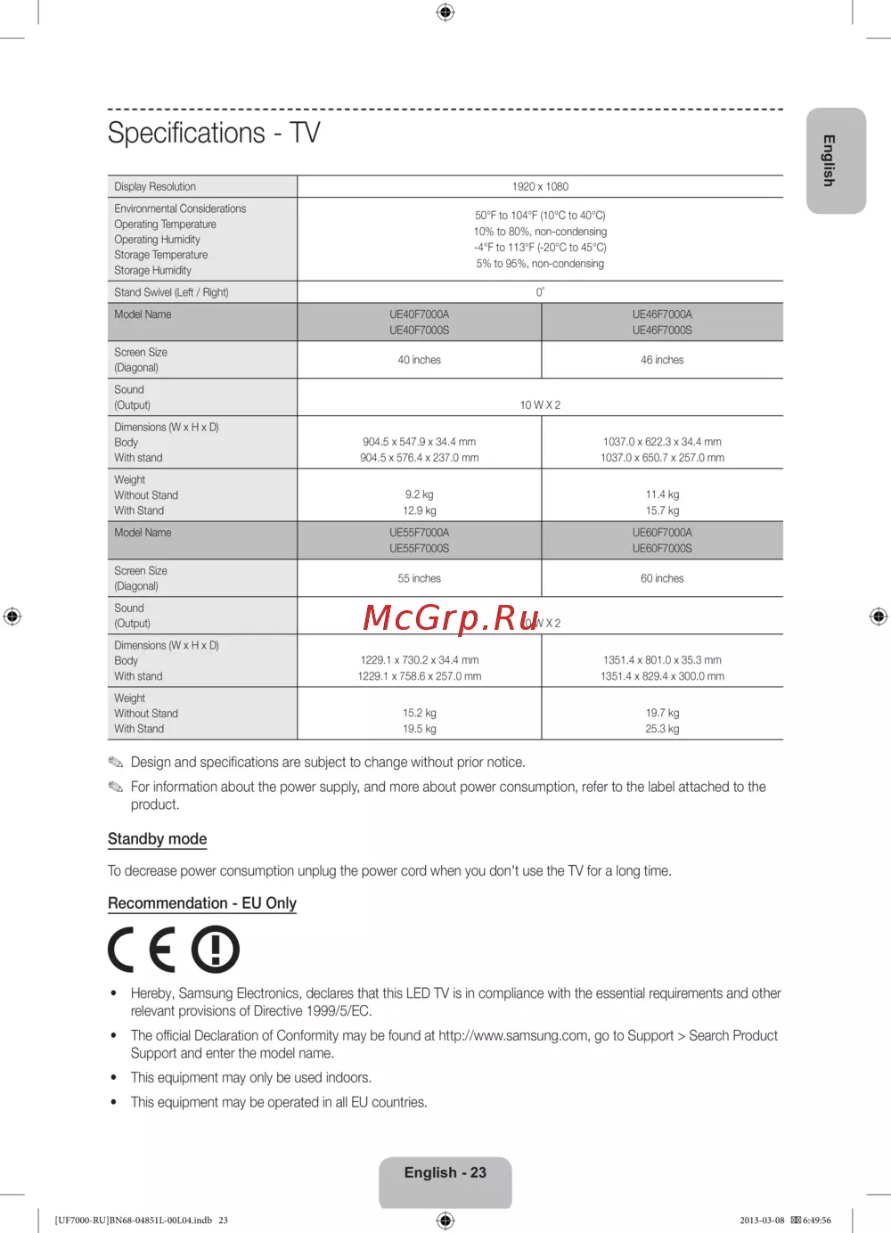 Samsung UE46F7000AT [23/93] Standby mode