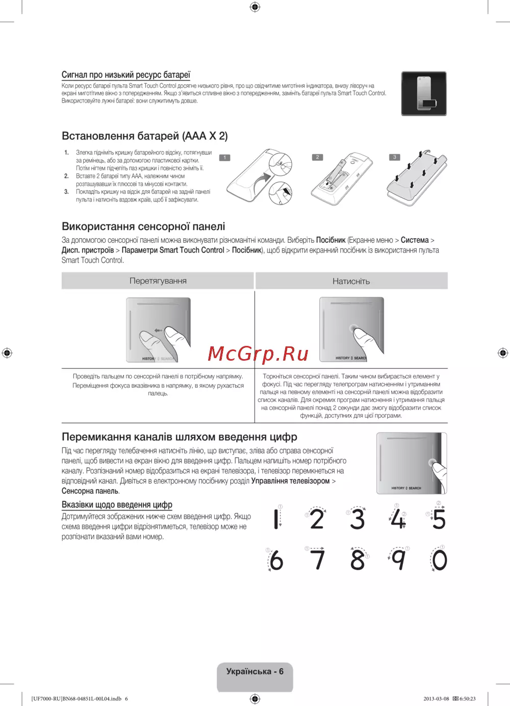 Дізнайтеся, як замінити батареї пульта Smart Touch Control та використовувати сенсорну панель для управління телевізором. Легкі кроки для комфортного користування.