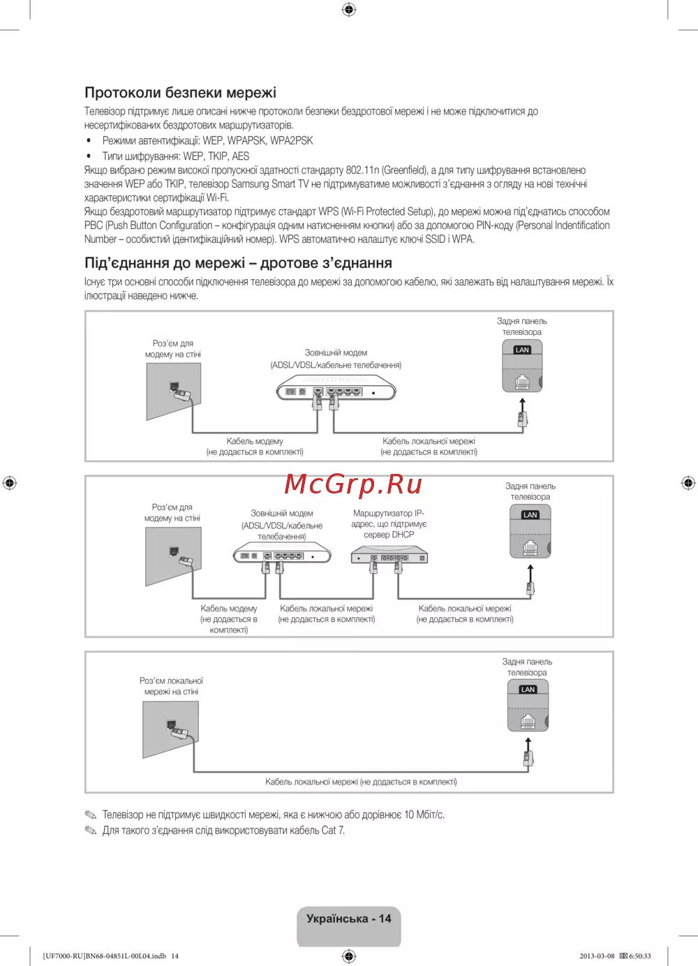 значення WEP або TKIP, телевізор Samsung Smart TV не підтримуватиме можливості з’єднання з огляду на нові технічні