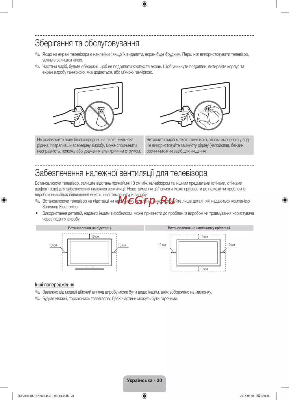 Samsung UE40F7000AT — правила зберігання та обслуговування телевізора [66/93]