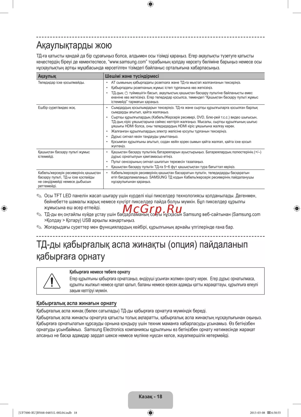 Samsung UE40F7000AT — теледидар ақаулықтарын жою: кеңестер мен шешімдер [87/93]