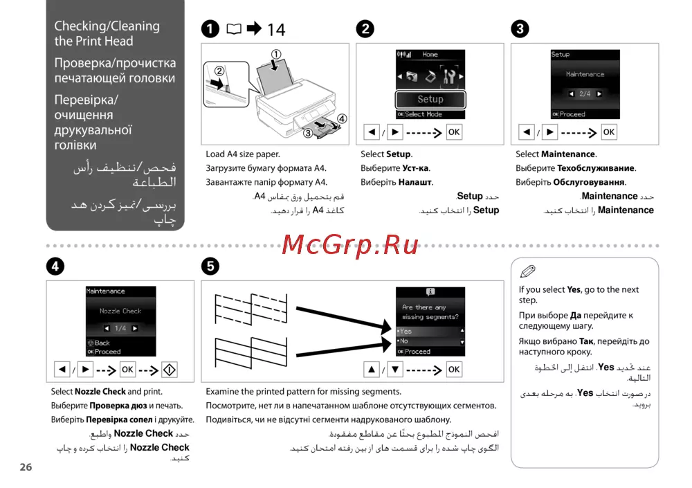 - Проверка прочистка печатающей головки p.26