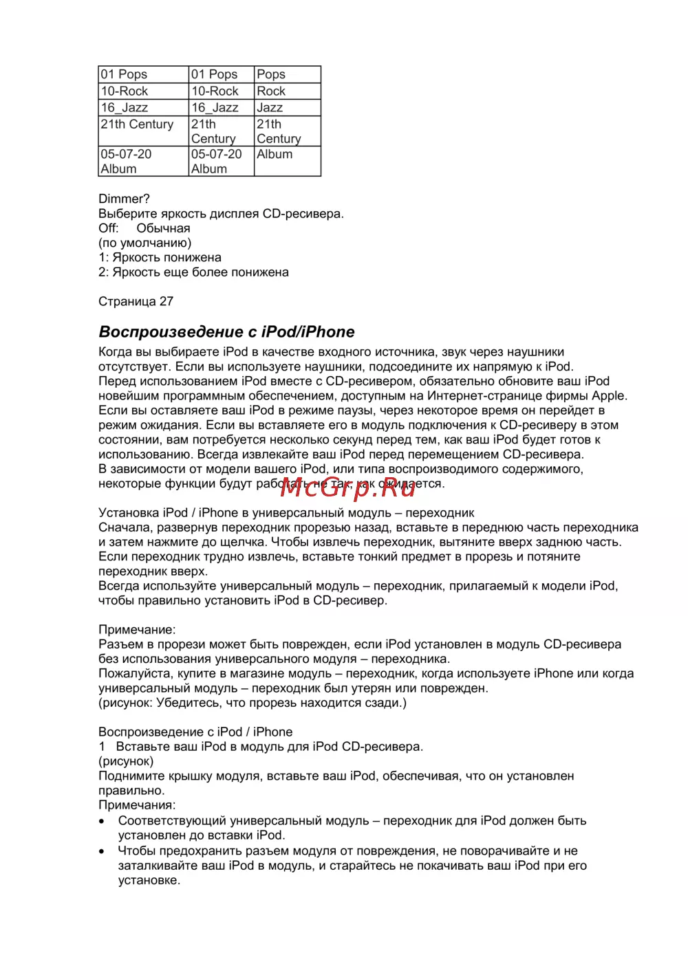 Перед использованием iPod вместе с CD-ресивером, обязательно обновите ваш iPod