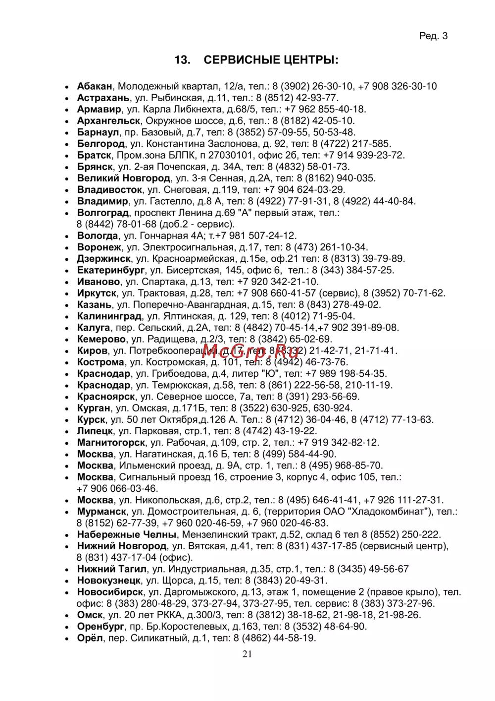 13. СЕРВИСНЫЕ ЦЕНТРЫ: