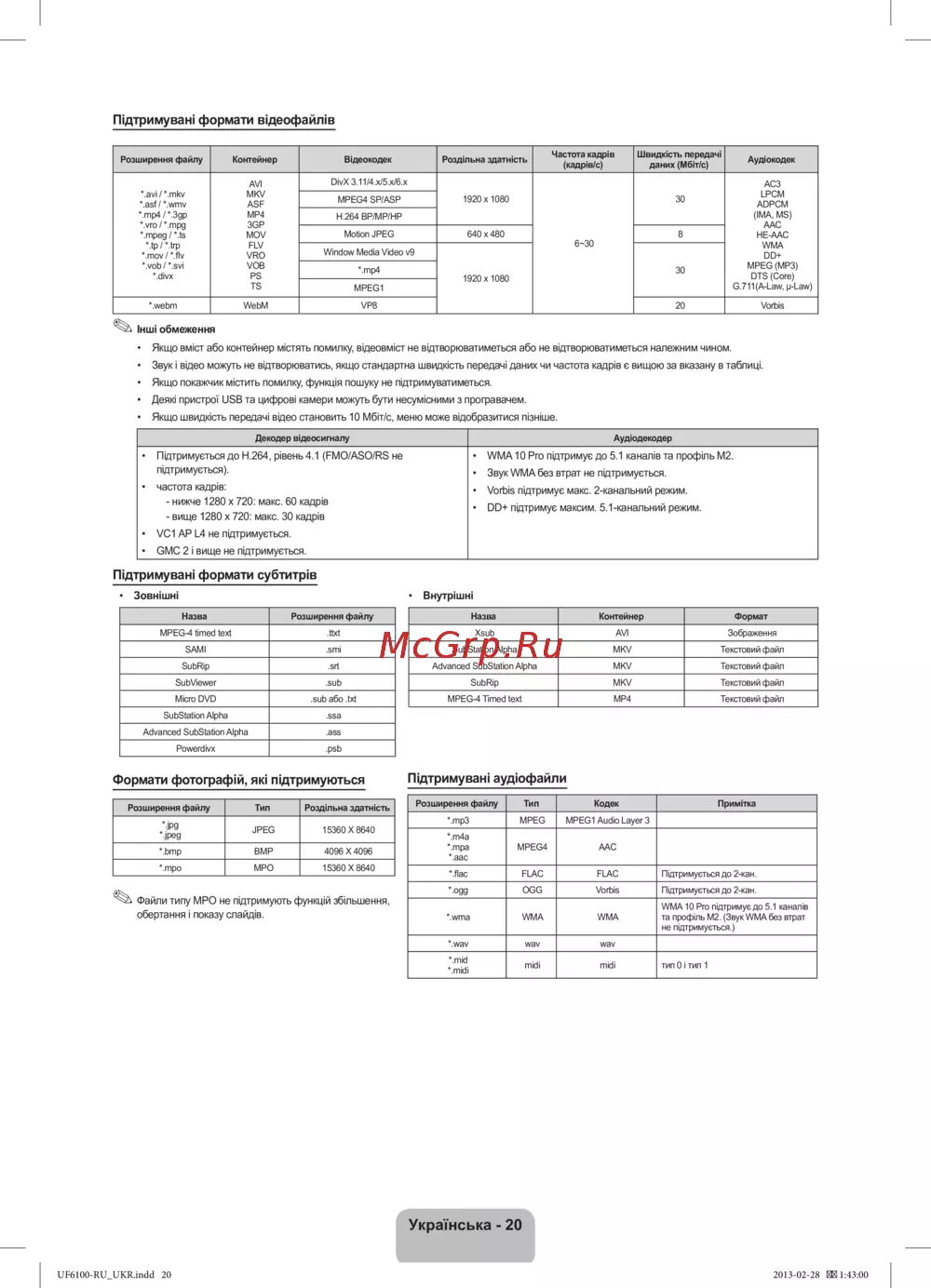 - Қолдау көрсетілетін субтитр пішімдері p.80