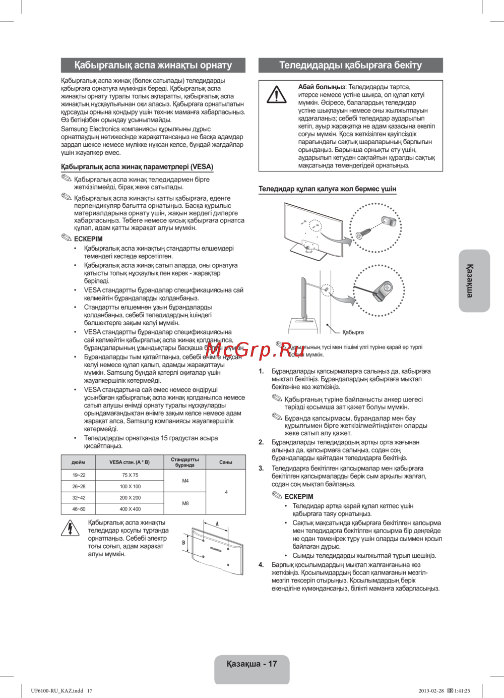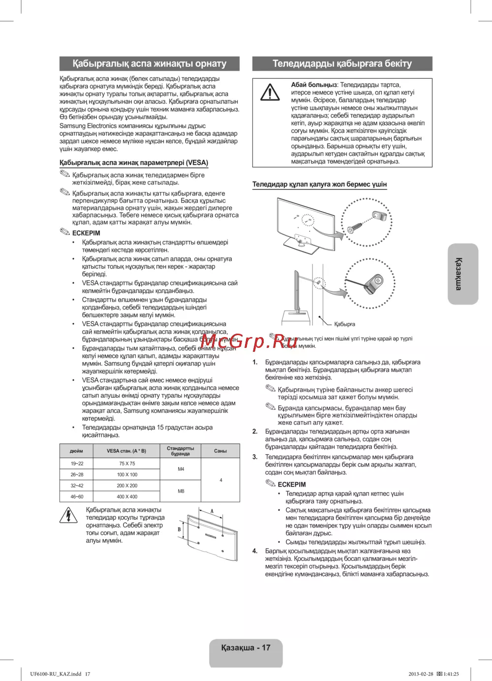 - Қабырғалық аспа жинақ параметрлері vesa p.77