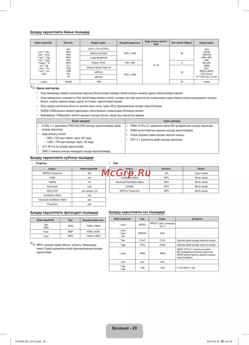 - Қолдау көрсетілетін бейне пішімдер p.80