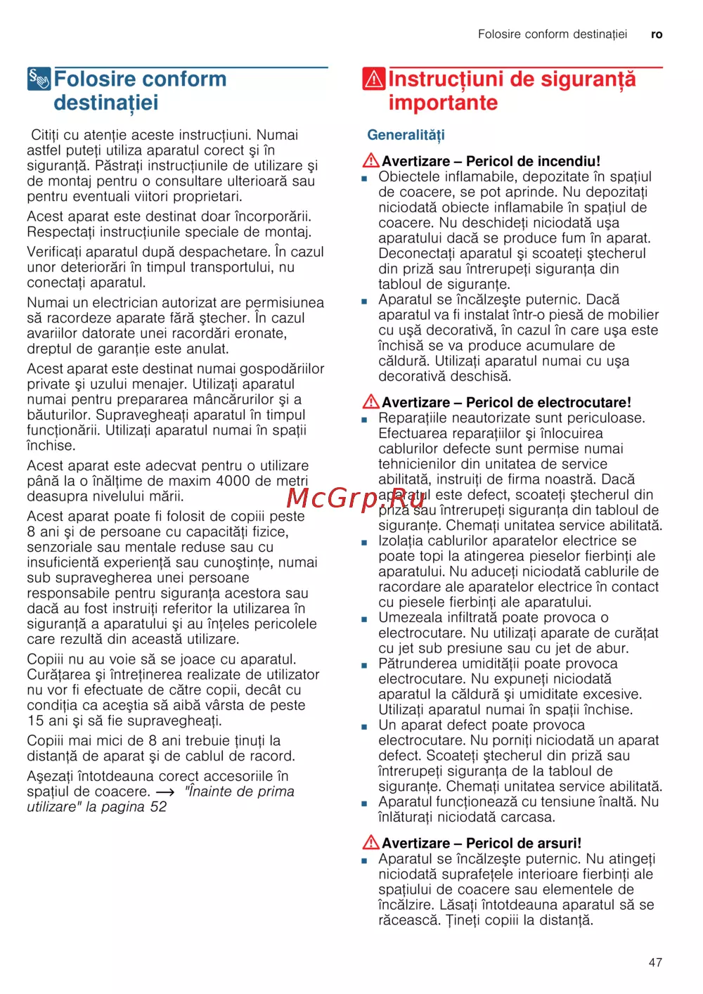 Citiți cu atenție instrucțiunile de utilizare pentru a asigura funcționarea corectă și sigură a aparatului. Respectați toate avertizările și recomandările pentru o utilizare optimă.