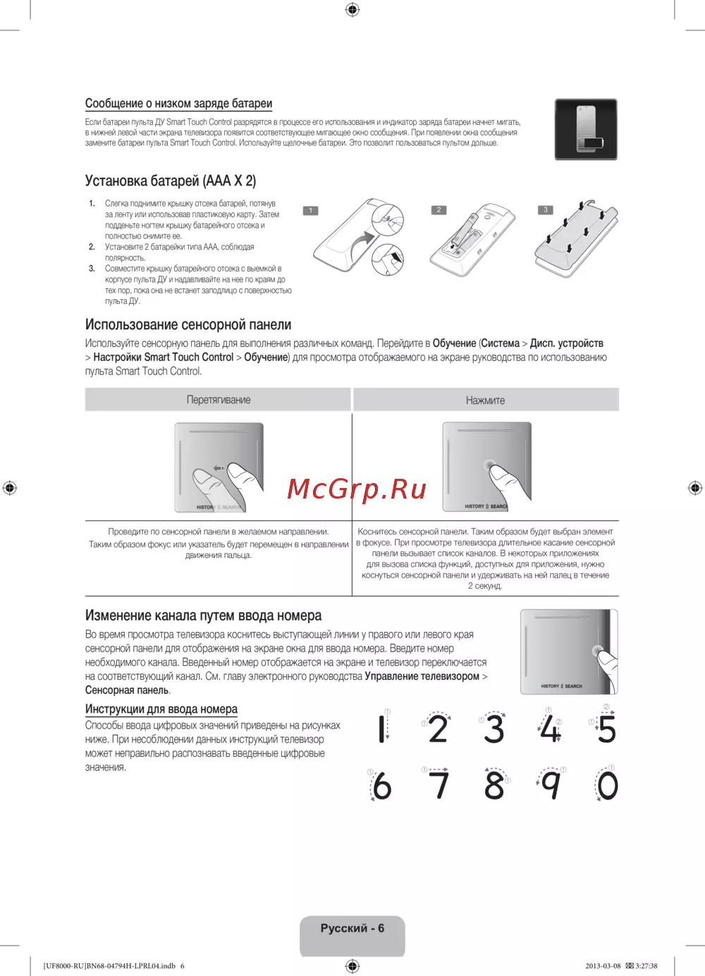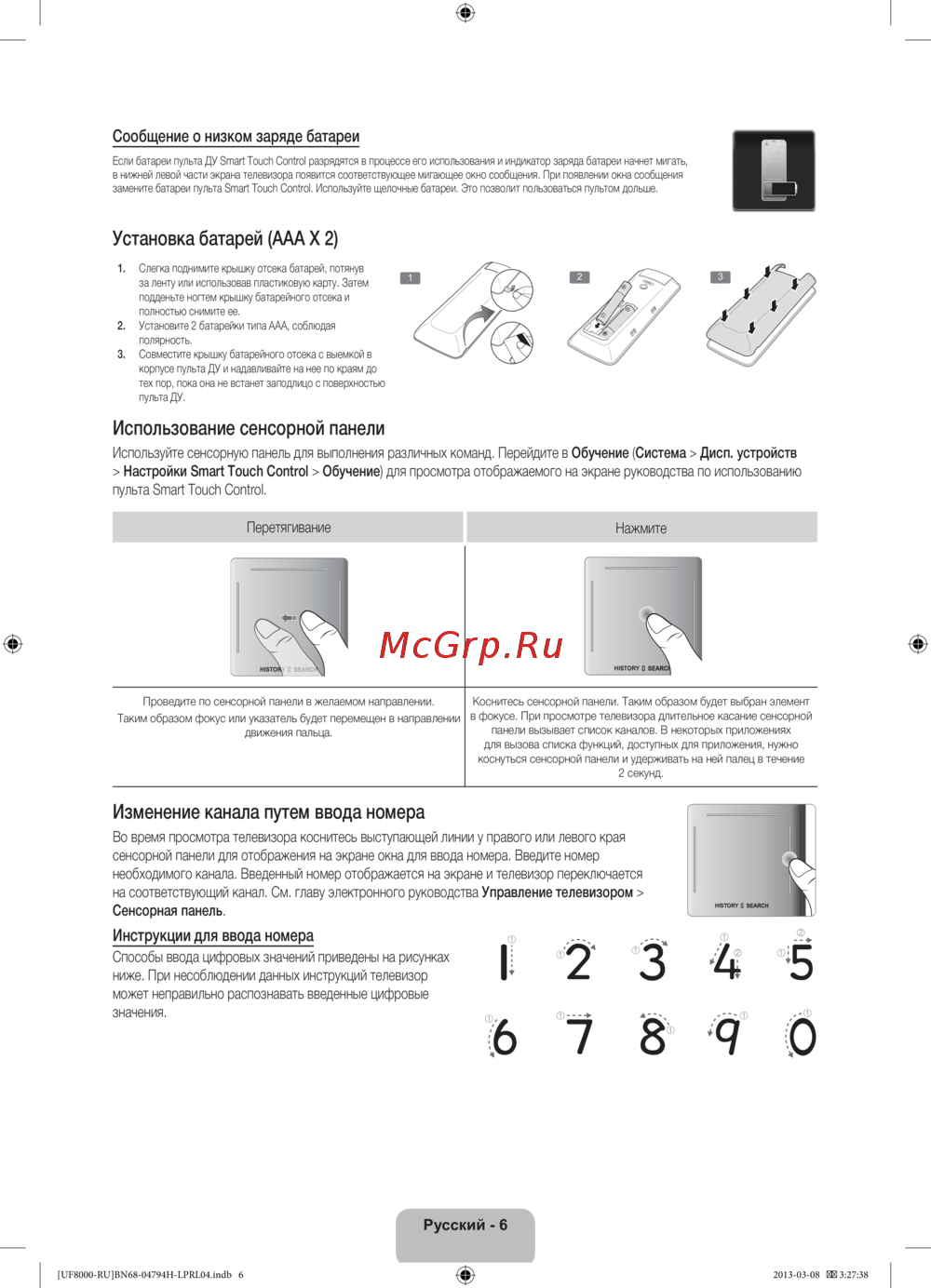 Samsung UE55F8000AT — инструкция по замене батарей и использованию пульта ДУ [6/24]