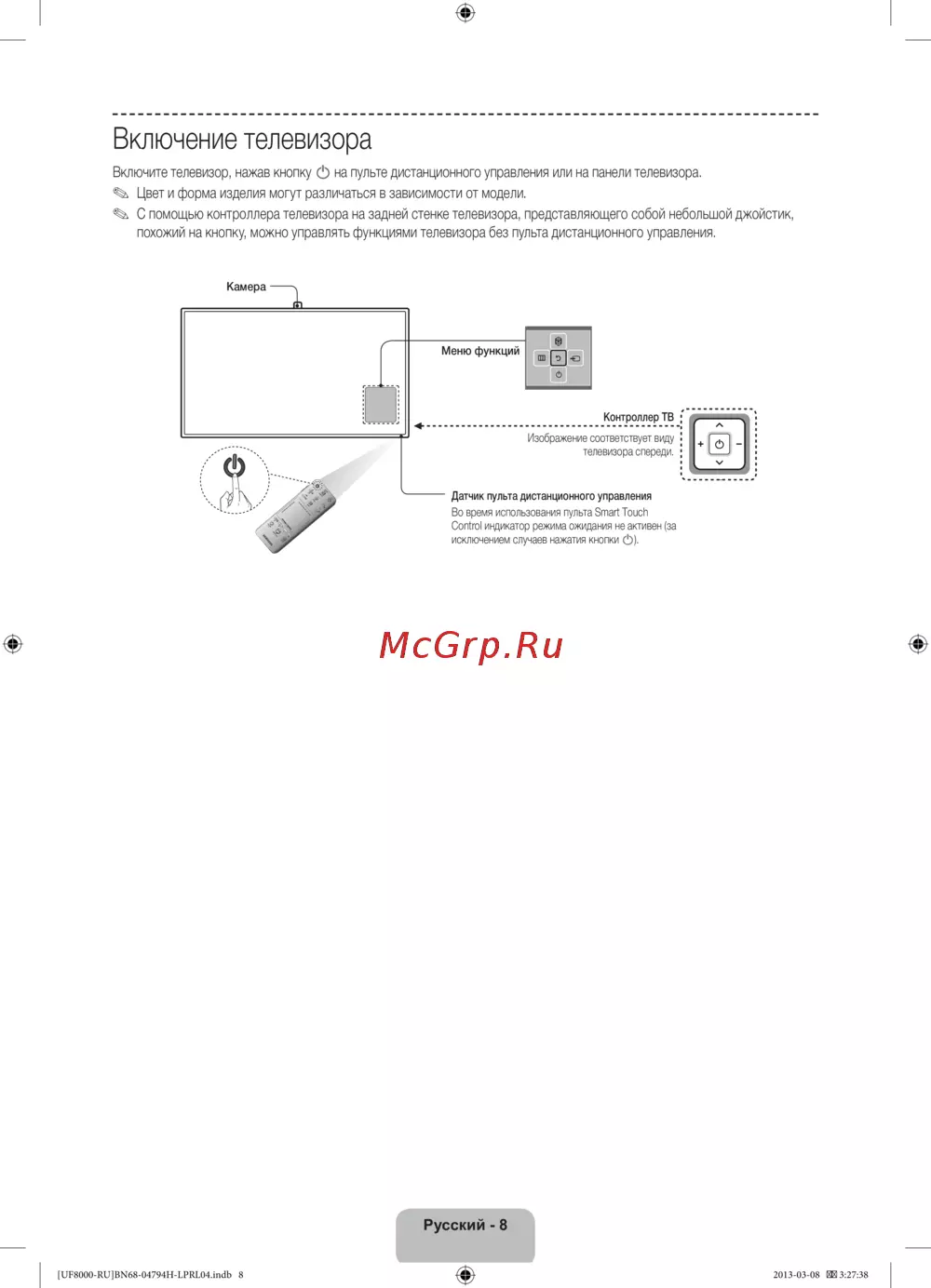 Samsung UE55F8000AT — как включить телевизор и использовать пульт дистанционного управления [8/24]