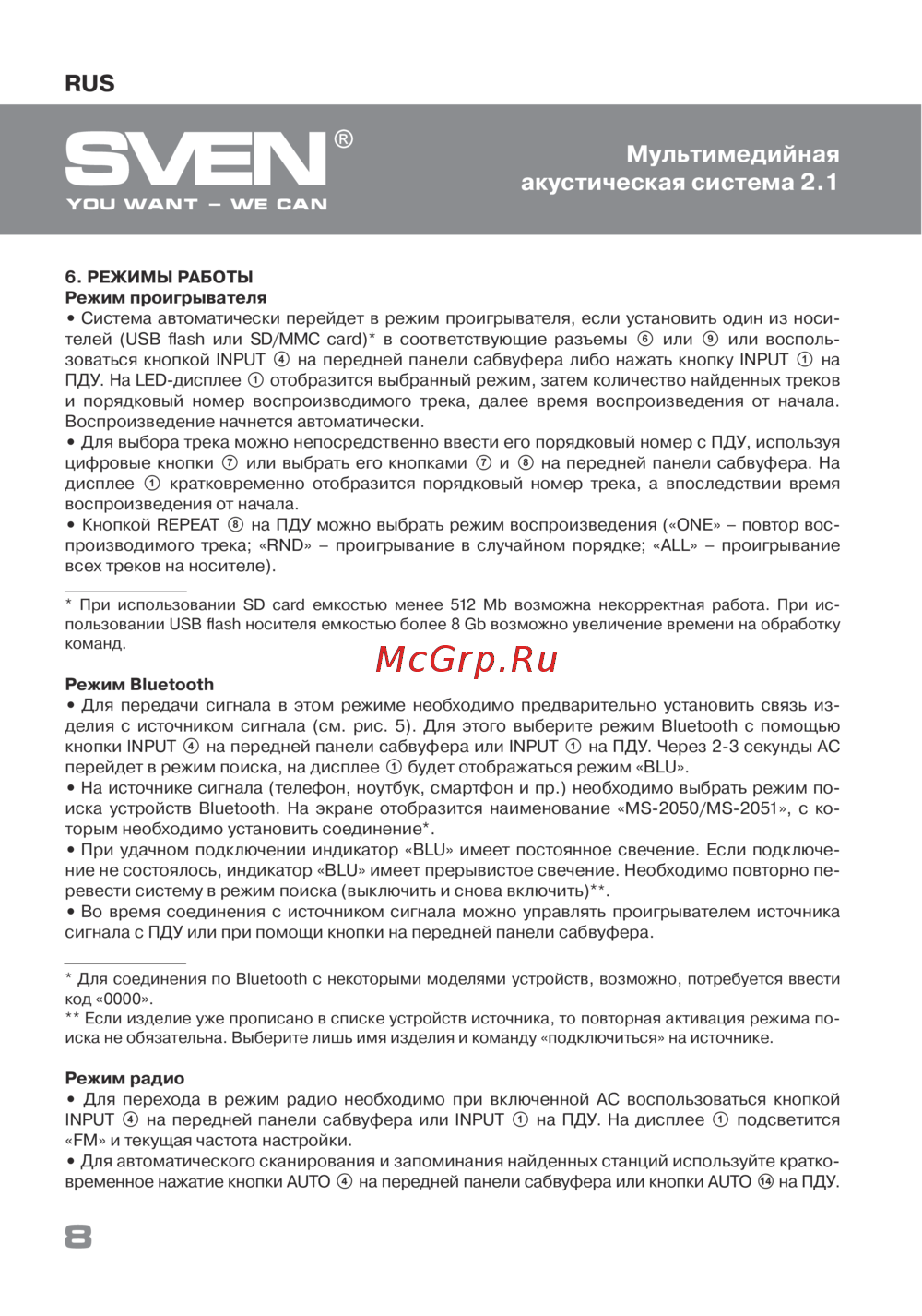 Sven MS-302Руководство по эксплуатации -