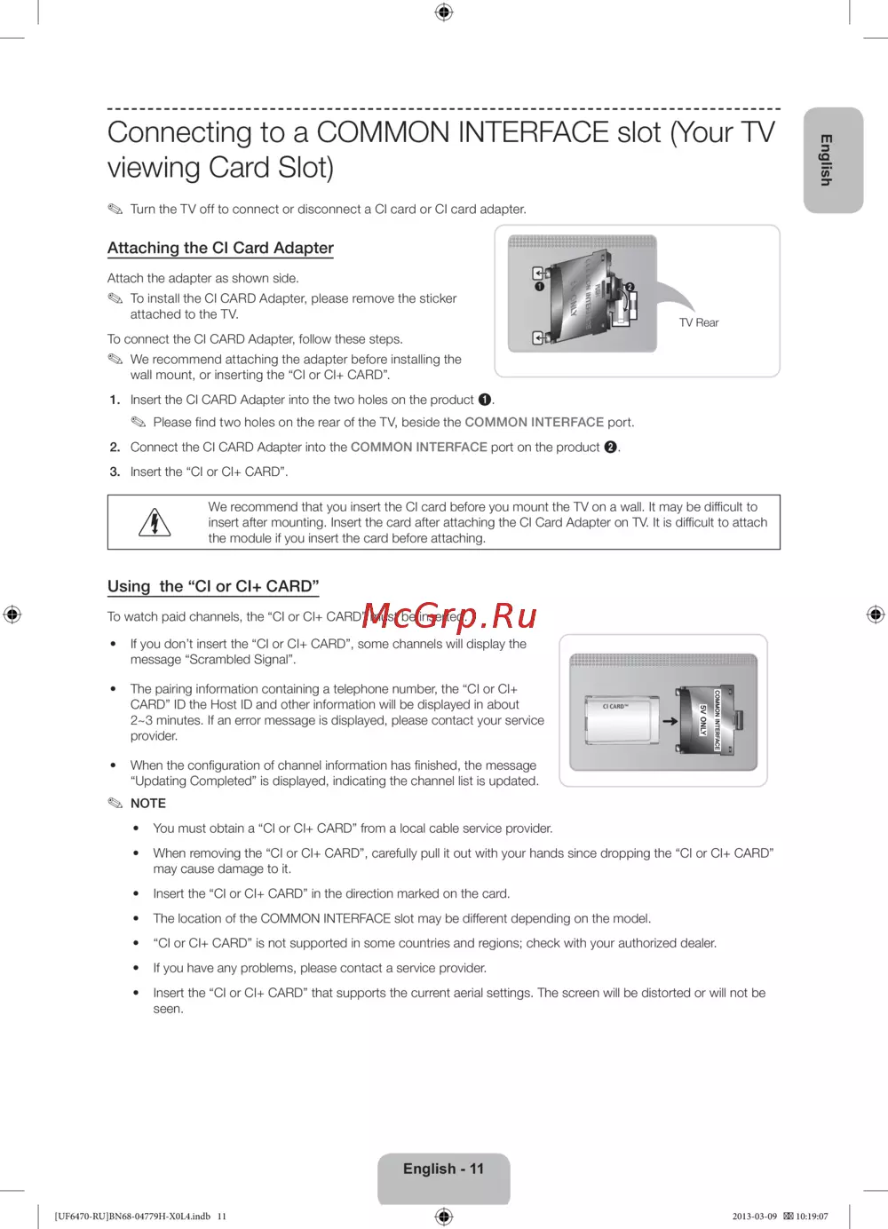 insert after mounting. Insert the card after attaching the CI Card Adapter on TV. It is difficult to attach