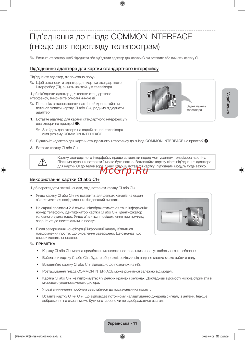 Картку стандартного інтерфейсу краще вставляти перед монтуванням телевізора на стіну.
