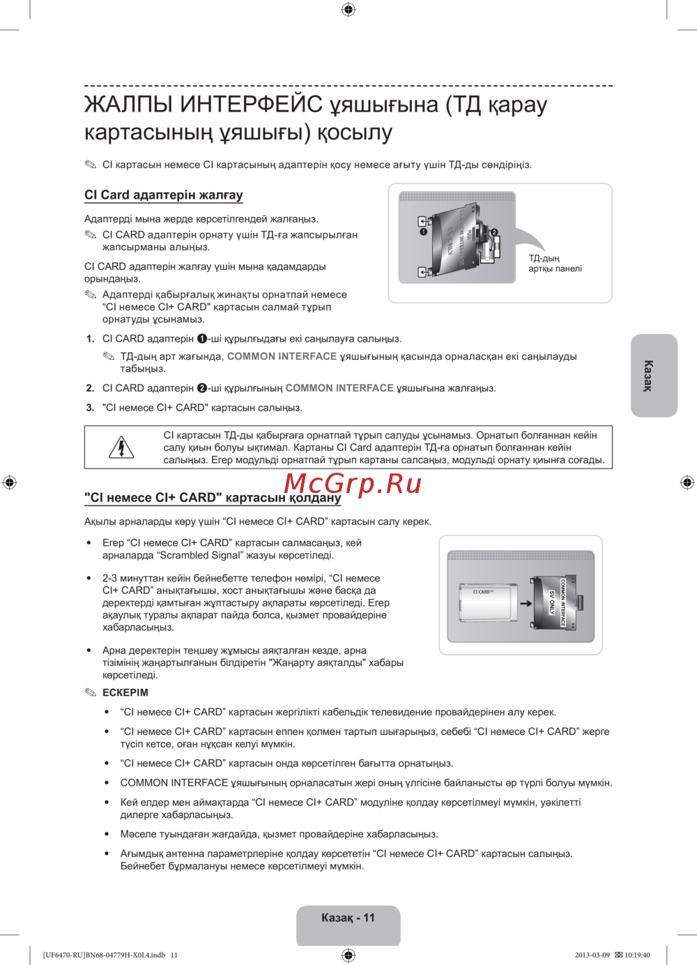 CI Card адаптерін қосу үшін қажетті қадамдарды орындаңыз. ТД-ны дұрыс орнату және картаны пайдалану бойынша пайдалы кеңестер алыңыз.