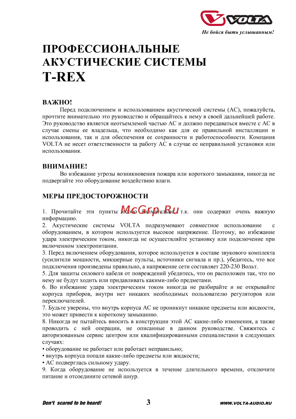 Volta T-REX ANGRY TOP — руководство по безопасному использованию акустических систем [3/9]