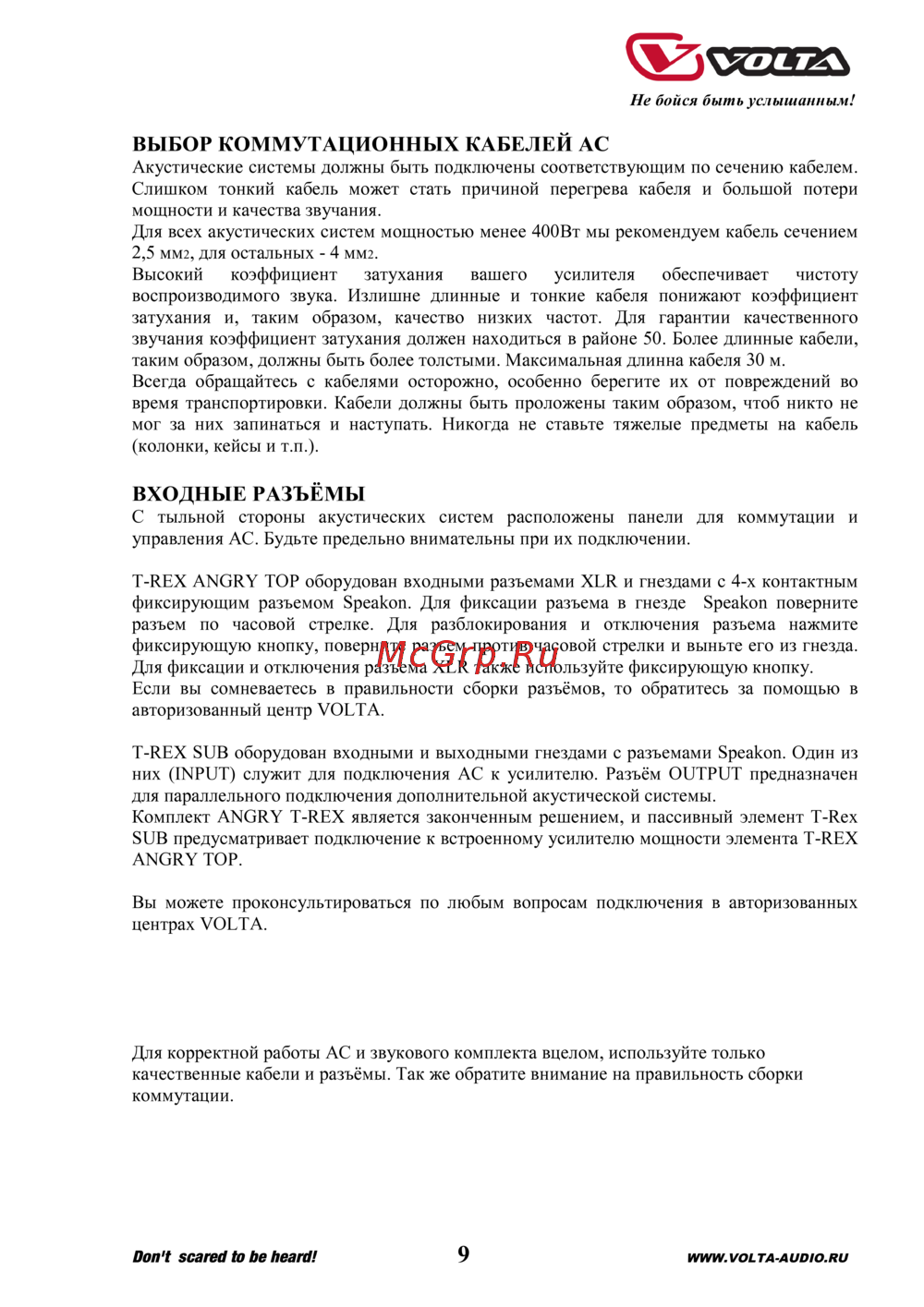 ![Volta T-REX ANGRY TOP [9/9] Выбор коммутационных кабелей ас](/views2/1873215/page9/bg9.png)