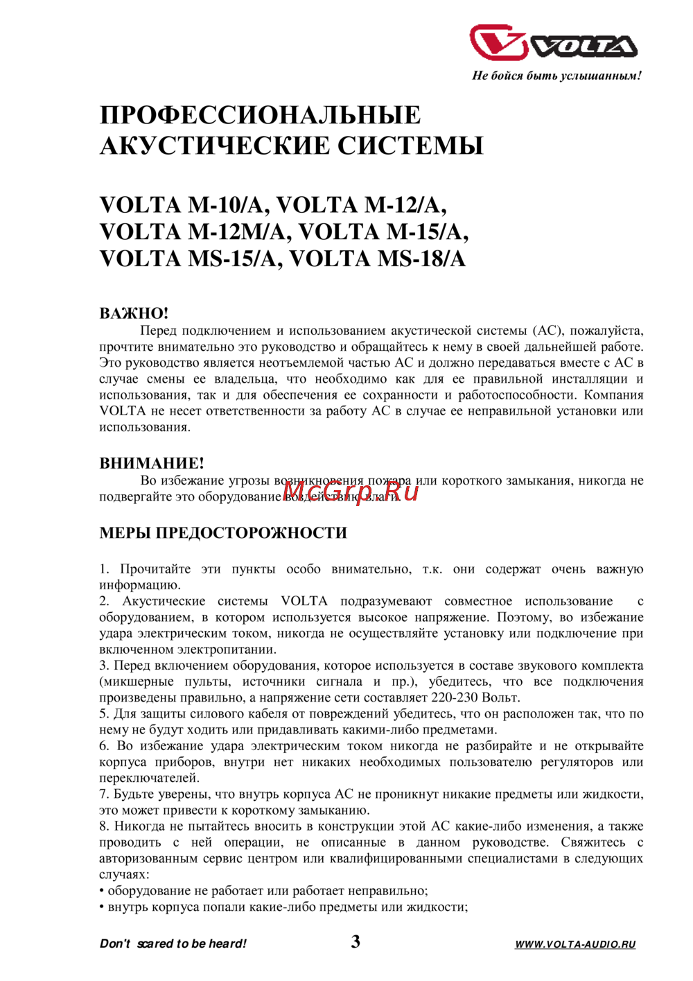 Don't scared to be heard! 3 WWW.VOLTA-AUDIO.RU