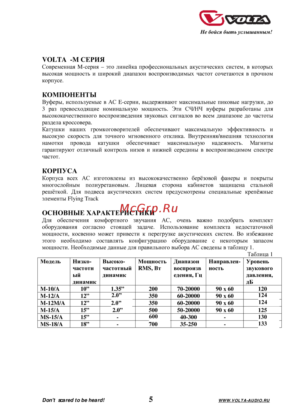 Don't scared to be heard! 5 WWW.VOLTA-AUDIO.RU