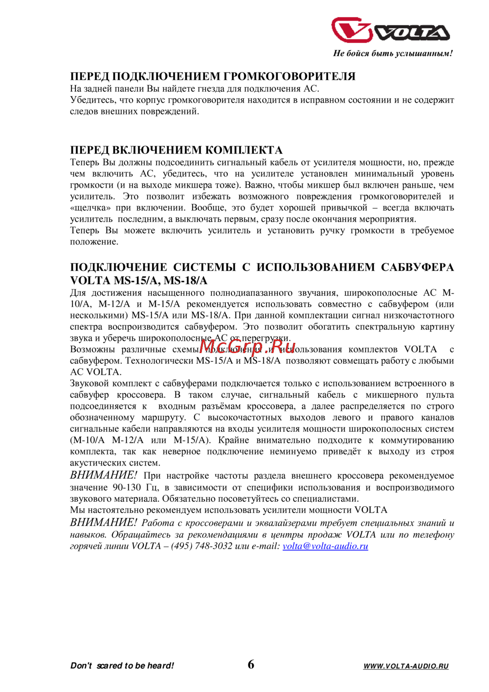Don't scared to be heard! 6 WWW.VOLTA-AUDIO.RU