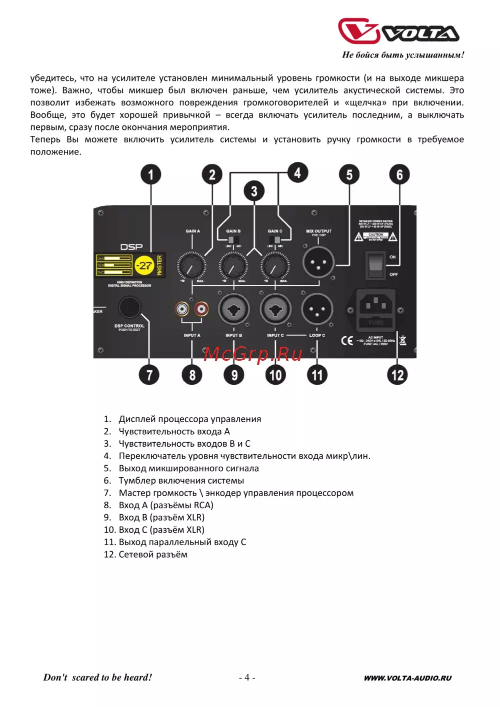 Volta FLY STAGE 12A Инструкция по эксплуатации онлайн [4/7] 657313