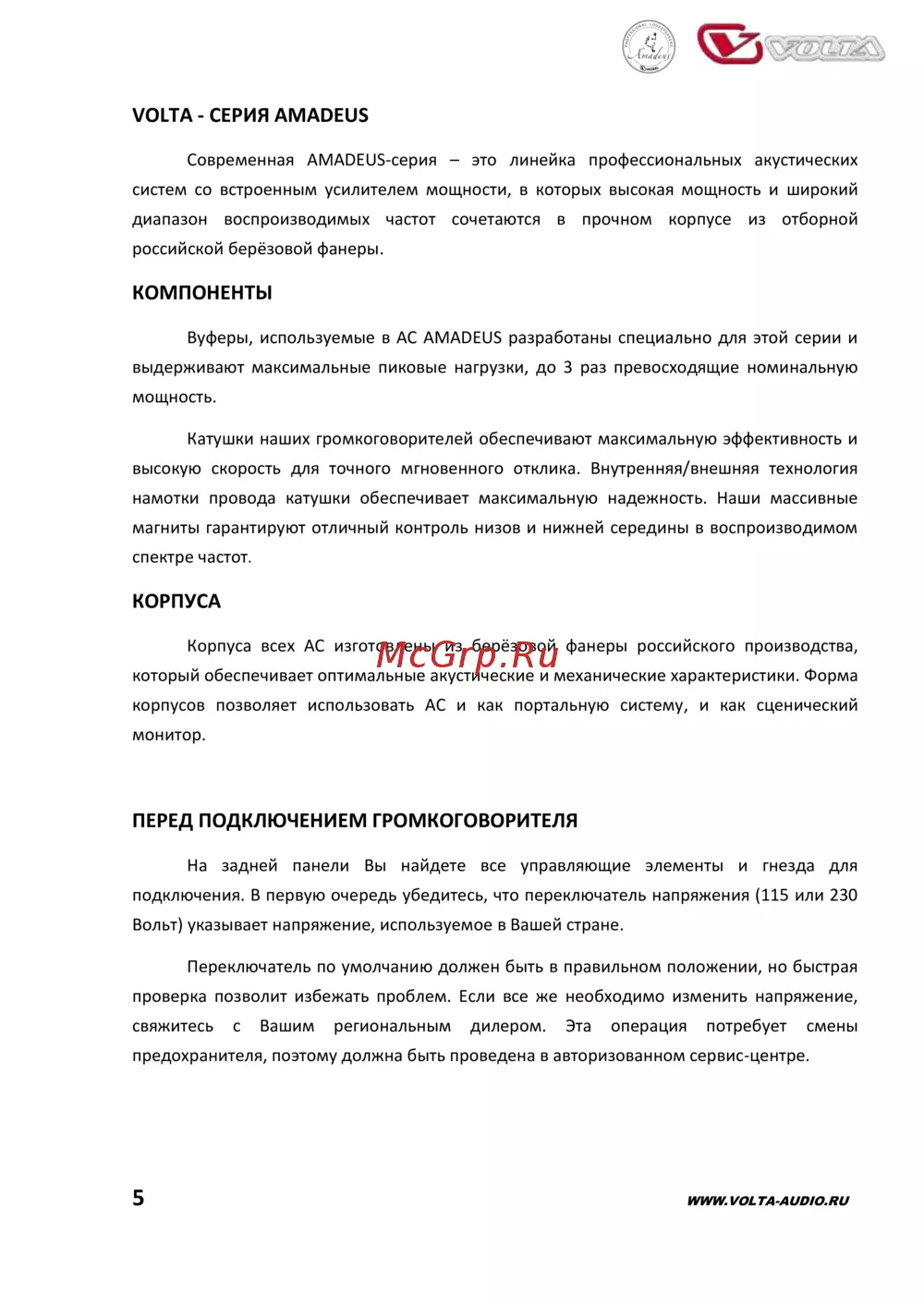 Volta AMADEUS SUB 18AИнструкция по эксплуатации -