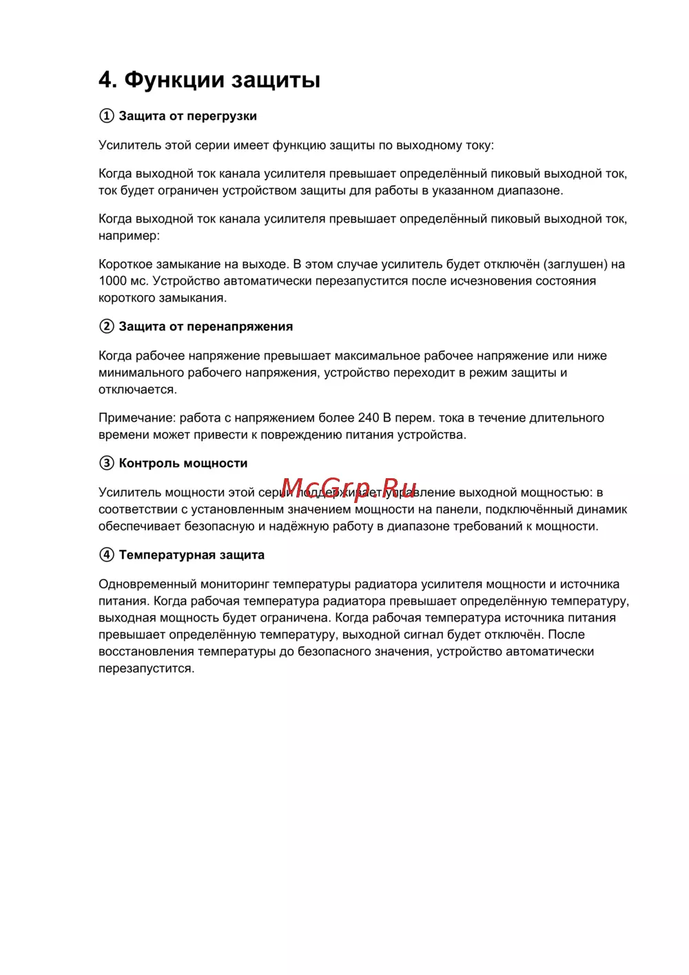 Усилитель этой серии имеет функцию защиты по выходному току:
