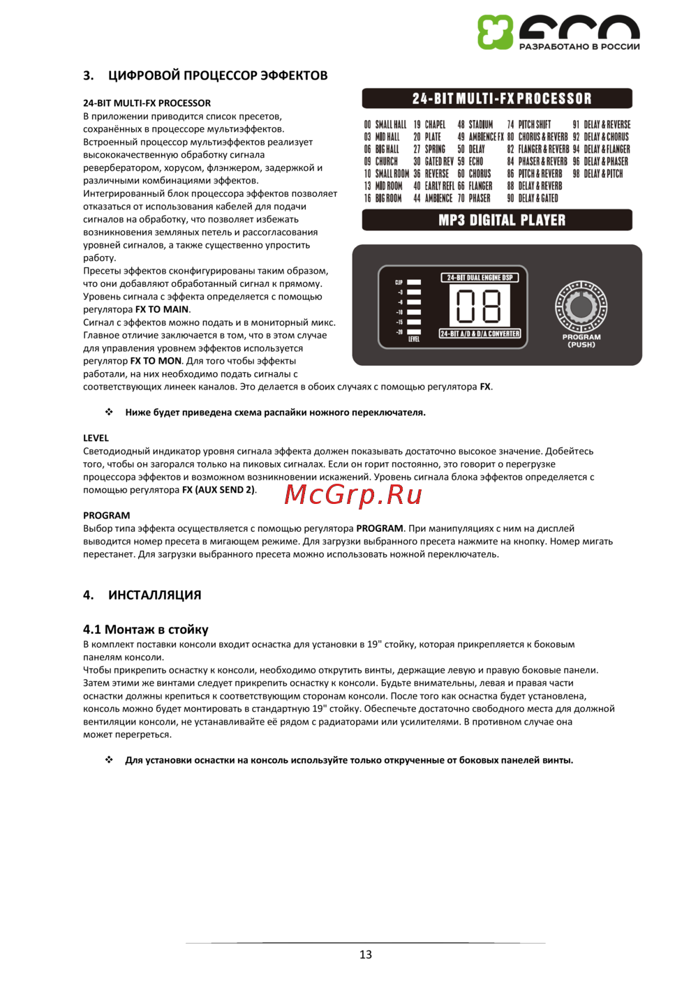 - Монофонические каналы 2 микрофонный и линейный входы p.5