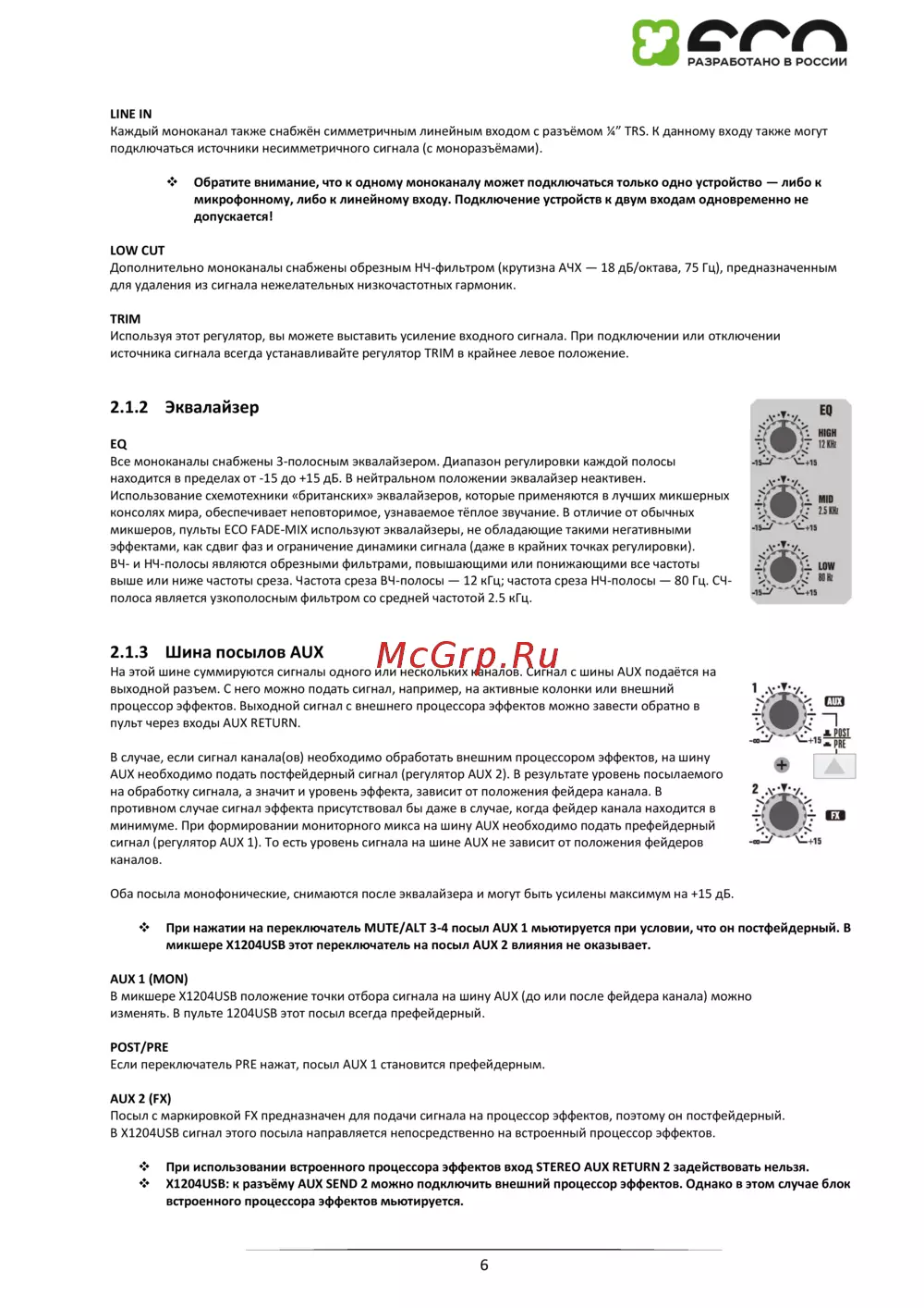 микшеров, пульты ECO FADE-MIX используют эквалайзеры, не обладающие такими негативными