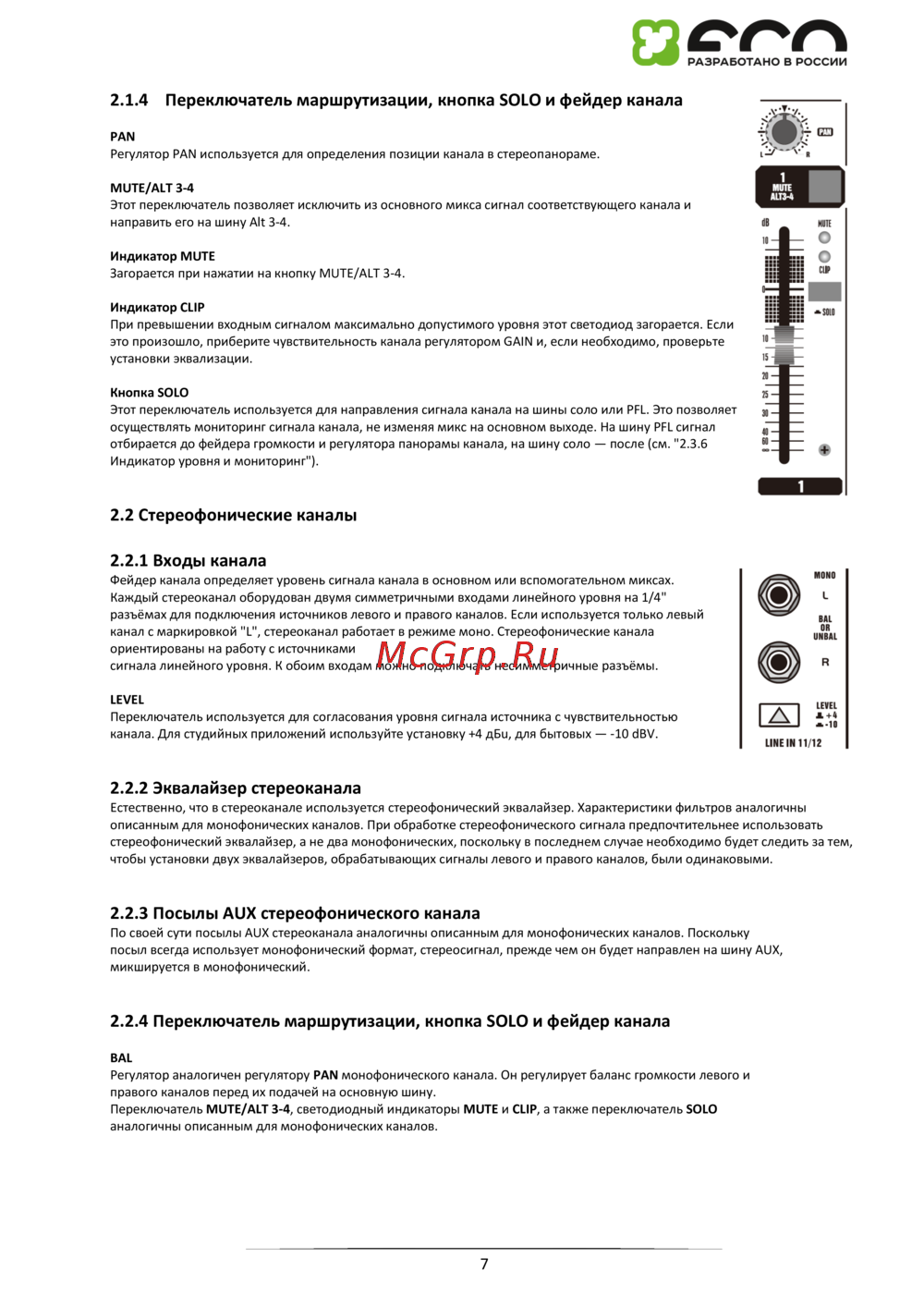 - Монофонические каналы 2 микрофонный и линейный входы p.5