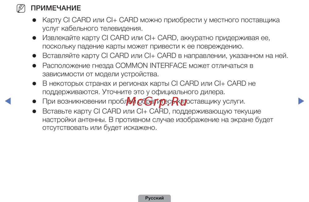 Вставьте карту CI CARD или CI+ CARD, поддерживающую текущие