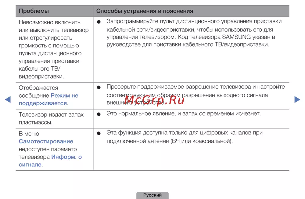 - При возникновении вопросов связанных с работой телевизора сначала просмотрите следующий список если ни один из перечисленных советов не поможет устранить неисправность посетите веб узел www samsung com и выберите пункт поддержка p.172