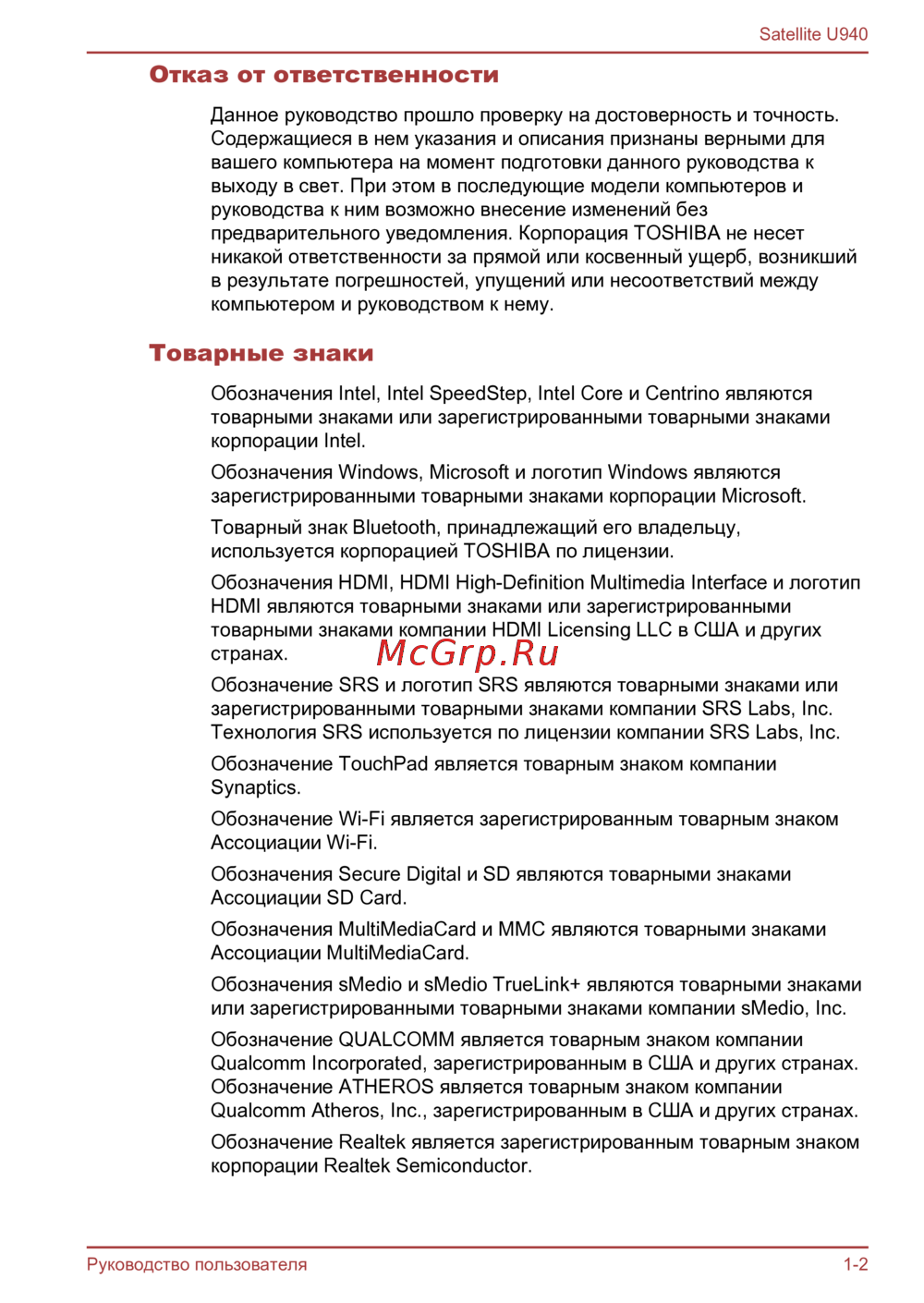 ![Toshiba SATELLITE U940-DPS [6/149] Товарные знаки](/views2/1083631/page6/bg6.png)